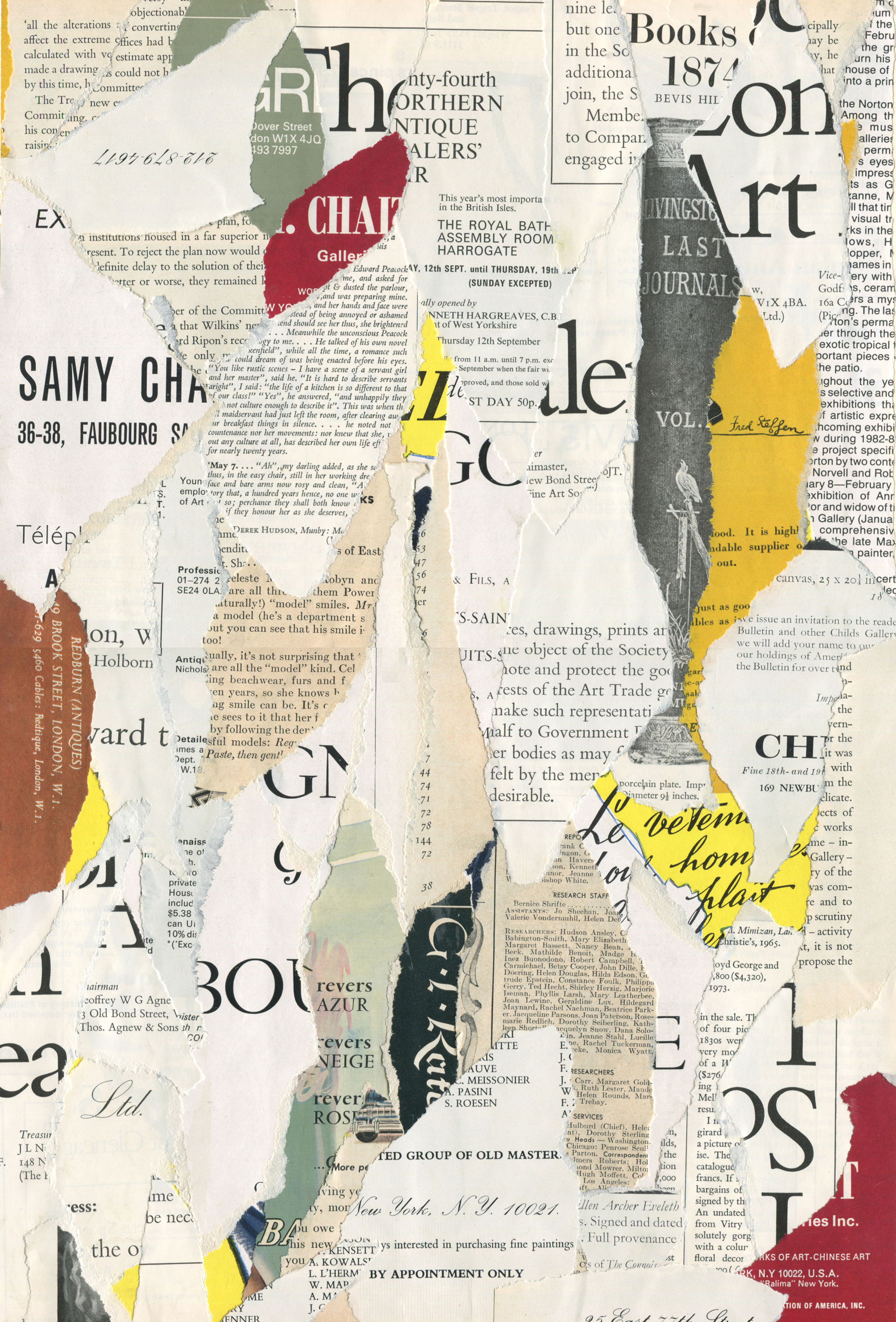 New York Times advertisement, BGC Library event poster, one of a series of flyers announcing lectures at BGC, and a seasonal brochure announcing gallery programs.